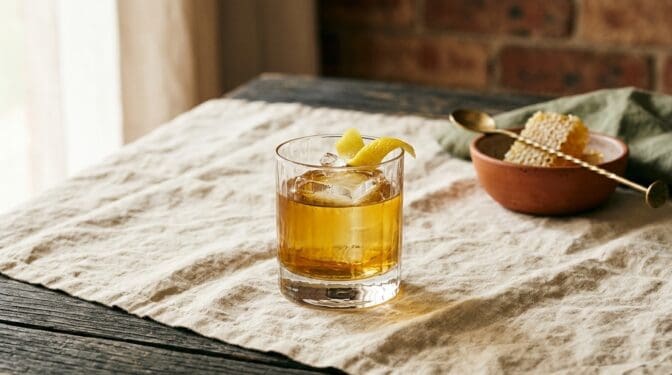 The Bee’s Knees made with bourbon. Modern classic from Milk & Honey, New York. Three ingredients.