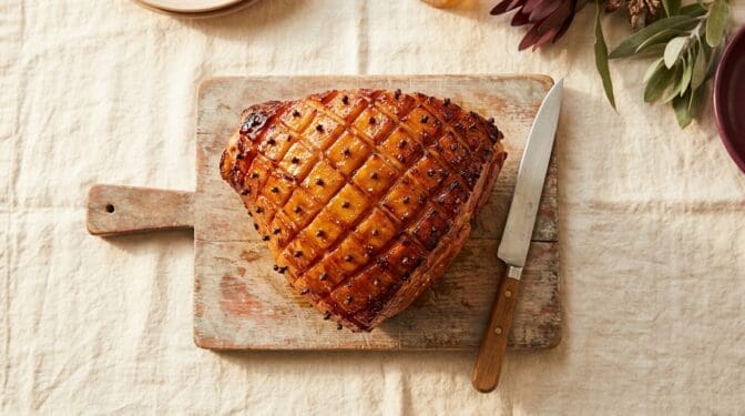 The ham itself is the easy part. You buy a leg ham (free-range Australian, the better the bird), score it, glaze it, bake it. Forty minutes work for the centrepiece of Christmas day.