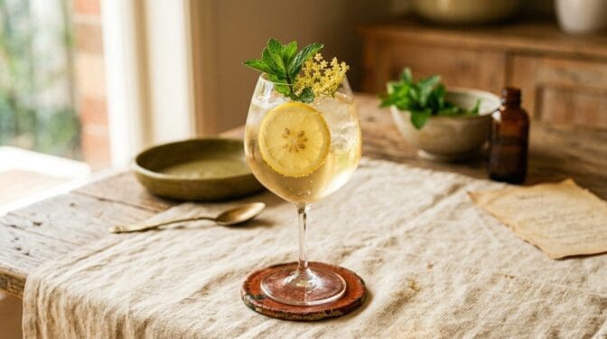 The most floral spritz in the family. Saint-Germain elderflower liqueur, sparkling wine, soda. Spring in a glass.