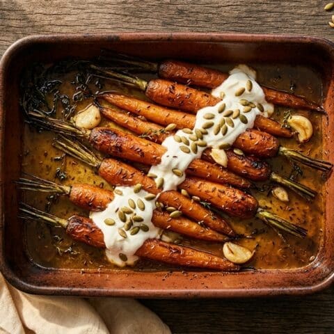 Roast 30-35 minutes, turning once halfway, until carrots are tender and edges deeply caramelised.
