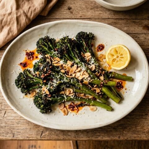 Lay broccolini in a single layer. Don't move for 2 minutes - let it char. Flip, char the other side for 2 minutes.