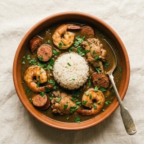 Serve over rice. Top with remaining parsley and a few drops of Tabasco.