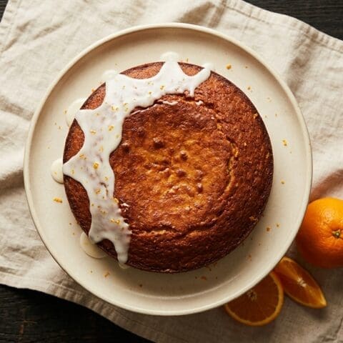 Optional glaze: whisk icing sugar with orange juice until pourable. Drizzle over cooled cake, let drip down sides. Serve with mascarpone or Greek yoghurt.