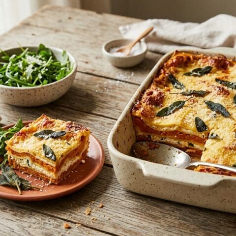 Sweet roasted pumpkin, ricotta, sage, nutmeg, layered with fresh pasta and a proper bechamel. Vegetarian, hefty, pairs with a medium-bodied red.