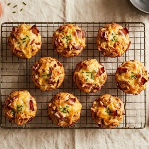 Whisk flour, baking powder, salt and pepper in a large bowl. Stir in 150g cheese, the bacon and spring onions.