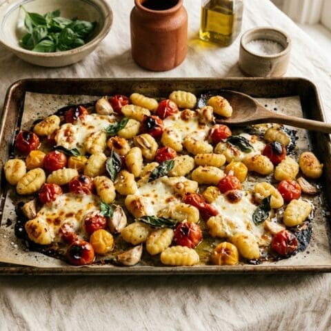 Sheet Pan Crispy Gnocchi with Tomatoes & Mozzarella